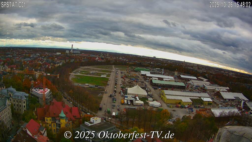 Unsere Webcam hat von der Paulskirche am nördlichen Rand der Theresienwiese einen umfassenden Blick auf das Festgelände. Mit unserer feststehenden Webcam können sie von oben das Festgeschehen auf dem Oktoberfest beobachten.